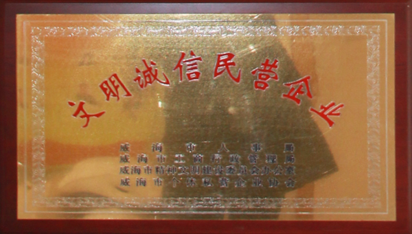 公司連續(xù)八年榮獲威海市“誠信開發(fā)企業(yè)”、“建筑施工誠信企業(yè)”,連續(xù)九年被評(píng)為威海市級(jí)“守合同重信用企業(yè)”,多次被評(píng)為威海市“市級(jí)文明單位”、“質(zhì)量管理先進(jìn)企業(yè)”、 “安全管理先進(jìn)企業(yè)”,乳山市“優(yōu)秀企業(yè)”、“先進(jìn)民營企業(yè)”、“納稅明星企業(yè)”,在社會(huì)上逐步樹立了誠信、穩(wěn)健的企業(yè)形象。